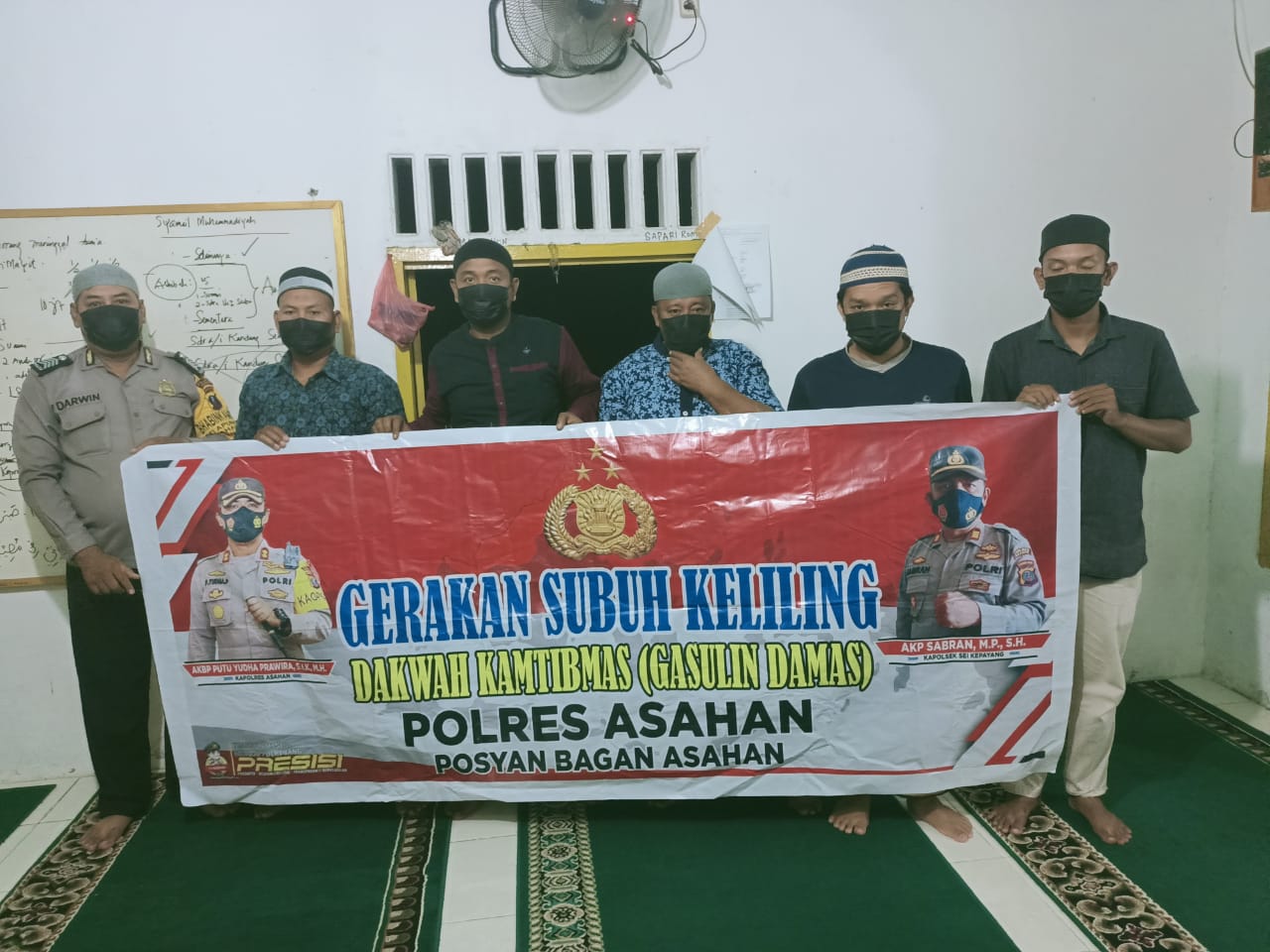 NASIONALXPOS.CO.ID, ASAHAN – Pogram Gerak Subuh Keliling Dakwah Kamtibmas(Gasuling ) Polres Asahan merupakan yang pertama dalam sejarah Polres Asahan, Program ini digagas Oleh Kapolres Asahan AKBP Putu Yudha Prawira SIK MH dan dikukuhkan melalui surat telegram No. 101 / VIII / BIN. 1. / 2021, tanggal 3 Agustus 2021 sebagai gerakan membangun Kamtibmas, spiritualitas, sosial dan kultural Adaptasi Kebiasaan Baru(AKB) ditengah Pandemi Covid -19 di Kabupaten Asahan, Jumat subuh (15/10/2021) .