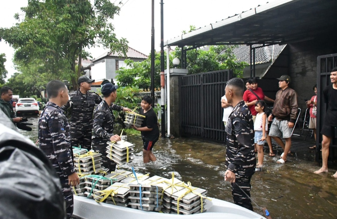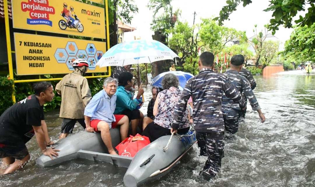 Banjir di Sesetan, Lanal Bali Gerak Cepat Evakuasi Warga Terjebak