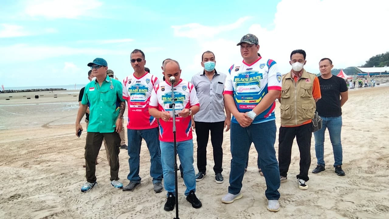 NASIONALXPOS.CO.ID, PANGKALPINANG – Wali Kota Pangkalpinang Maulan Aklil (Molen) menghadiri pembukaan Kapolres Cup balap sepeda motor, di Pantai Pasir Padi Pangkalpinang, Sabtu (4/6/2022).