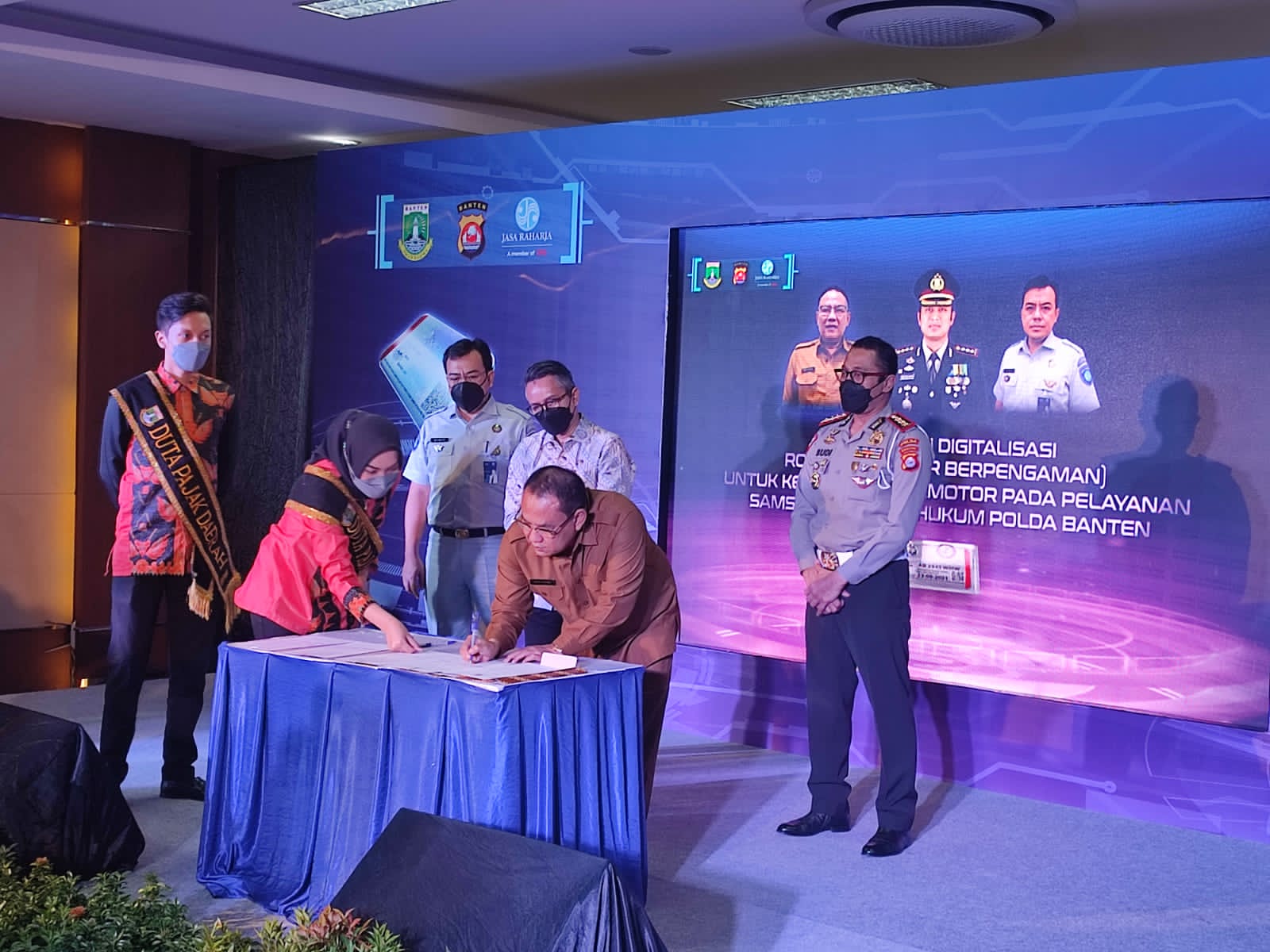 Badan Pendapatan Daerah Provinsi Banten sebagai Provinsi Pertama Pilot Project Penerapan “ROAD TAX” Nasional, acara ini dihadiri oleh Dirjen Bina Keuangan Daerah Kemendagri, Dirlantas Polda Banten, Direktur Jasa Raharja, dan perwakilan TIm Pembina Samsat dan Kapolres Serang.
