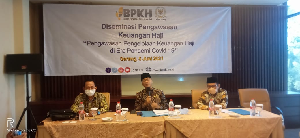 Badan Pengelola Keuangan Haji (BPKH) bersama Komisi VIII DPR RI menyelenggarakan Diseminasi (penyebaran informasi) tentang pengawasan pengelolaan keuangan haji di era pandemi Covid-19 di Hotel Horison Ultima Ratu yang beralamat di Jl K.H Abdul Hadi No 66 Cipare , Kecamatan Serang, Kota Serang Provinsi Banten (5/5/2021).