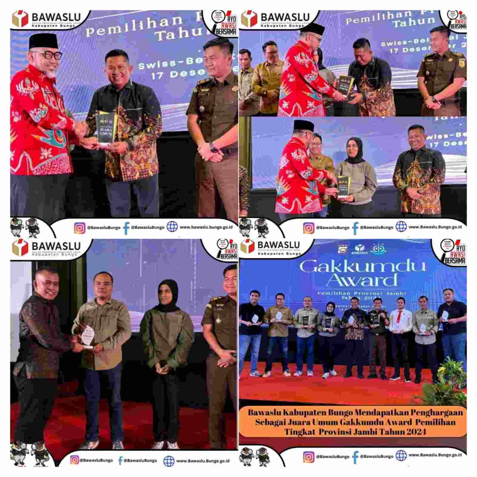 Kesuksesan ini tak hanya pengakuan dari masyarakat saja, namun juga ditandai dengan perolehan penghargaan Gakkumdu Award dari Bawaslu Provinsi Jambi, Selasa (17/12/2024) di Swiss-Bel Hotel.