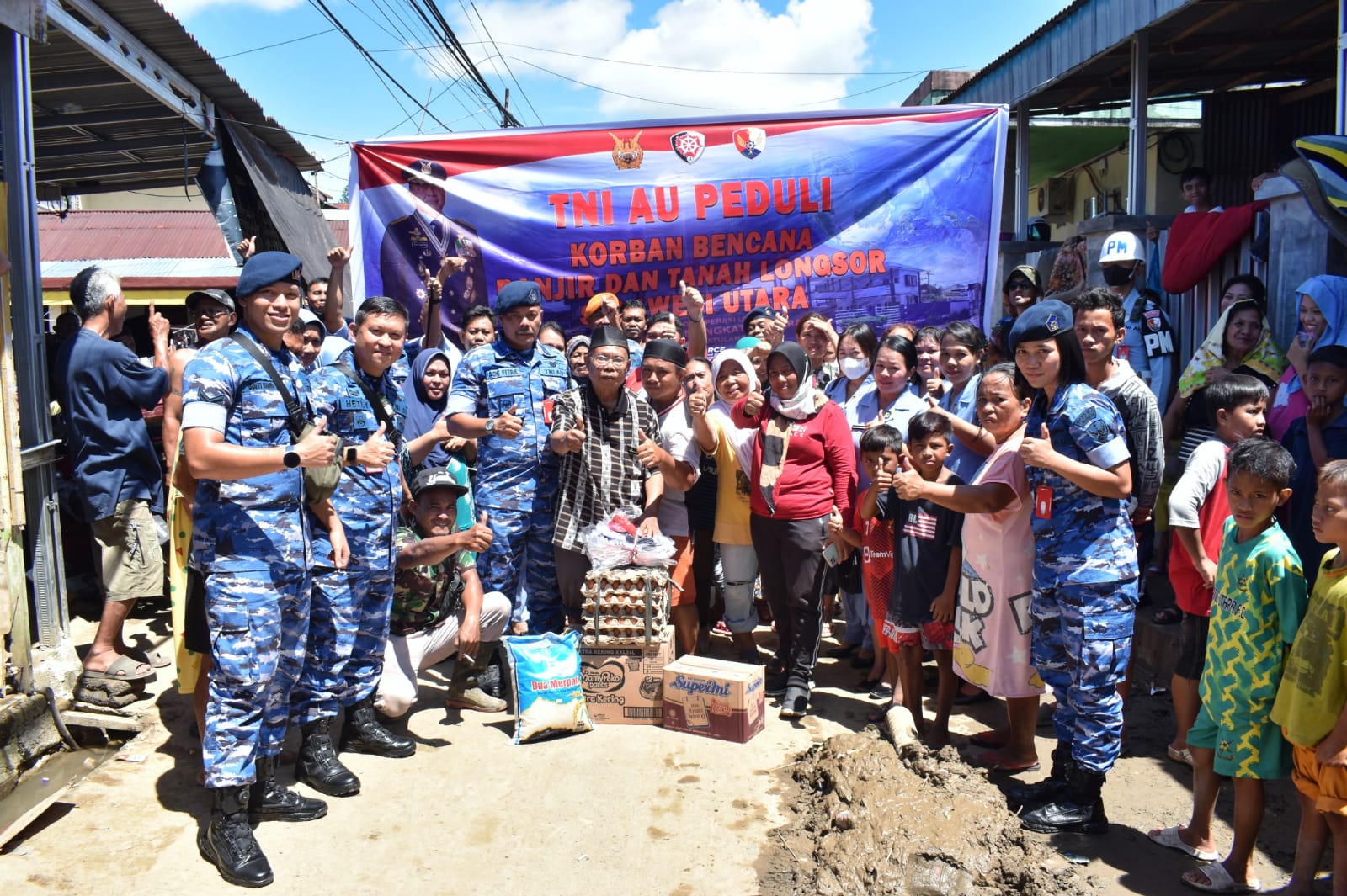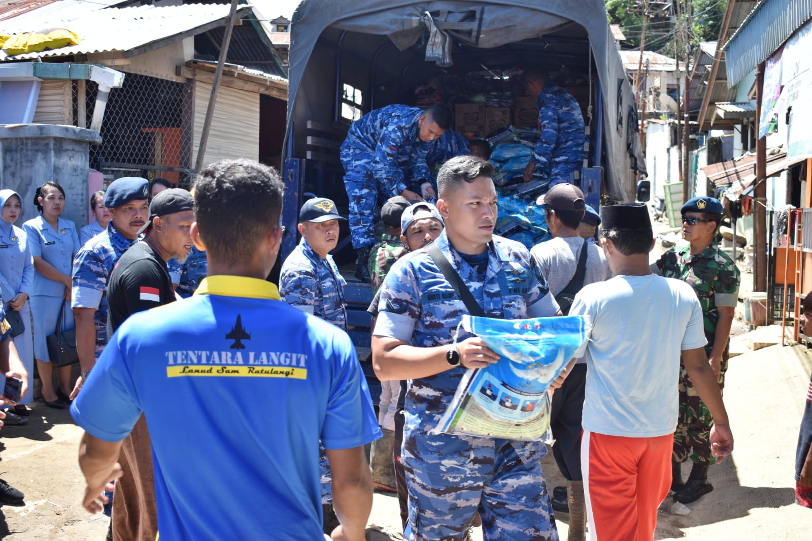 Kasau melalui Komandan Pangkalan TNI AU Sam Ratulangi Kolonel Pnb Muhammad Mujib.  Dan Kadisops Kolonel Pnb Ade Fitra, memberikan bantuan sosial kepada warga terdampak bencana banjir Bandang dan tanah longsor.