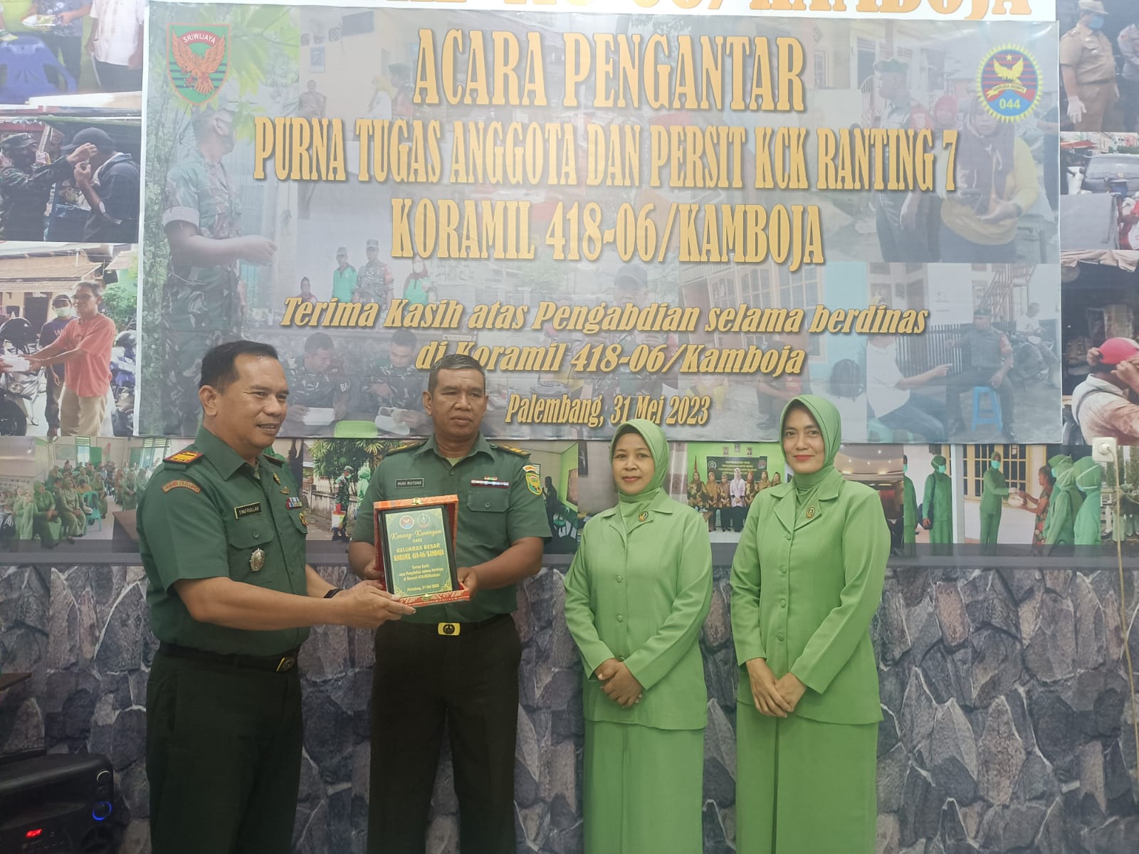 NASIONALXPOS.CO.ID, PALEMBANG – Sebagai bentuk penghargaan, Keluarga besar Koramil 418-06/Kamboja, menggelar acara Pelepasan Anggota Koramil 418-06/Kamboja Peltu Mugi Ristono dalam rangka Pensiun, di Makoramil 418-06/Kamboja Palembang, Rabu (31/5/2023).