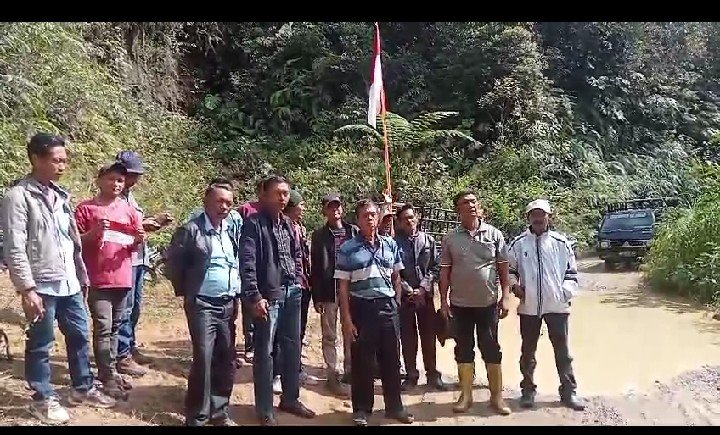 NASIONALXPOS.CO.ID, KABUPATEN TOBA – Warga masyarakat yang berdomisili di Desa Pangururan, Rianiate dan Lumban Sewa mengikuti rangkaian upacara Hari Ulang Tahun (HUT) Kemerdekaan RI ke 79 bertempat di jalan provinsi yang berlumpur dan tergenang air di Lekkung-Lekkung Desa Pangururan, Kec.Nassau, Kabupaten Toba, Provinsi Sumatera Utara.