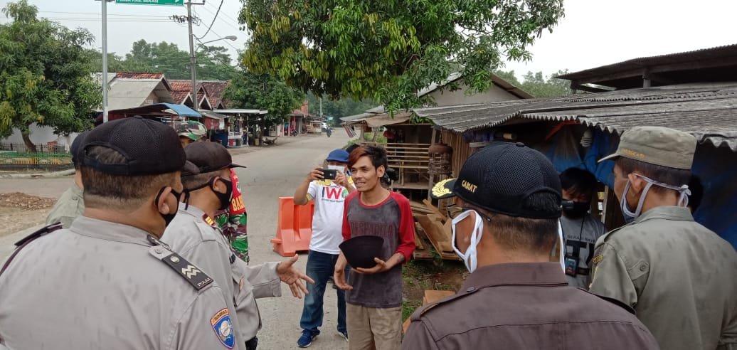Opersi yang di lakukan petugas guna memutus mata rantai covid 19, di lakukan petugas Polsek Cibarusah agar warga tidak kendor dalam menerapkan protokol kesehatan meski wilayah Bojong mangu berada di zona hijau covid 19.