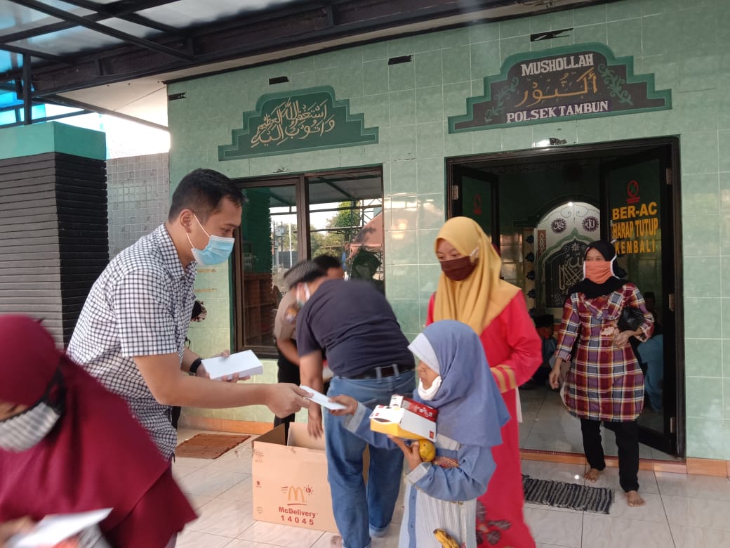 Bertempat di mushola mapolsek tambun dengan di mulai membacakan surat Yasin bersama dengan Kapolsek tambun AKP Gana Yudha dan beberapa anggota Polsek tambun, puluhan anak anak yatim piatu dengan khusu membacakan alunan ayat suci Alquran.(01/08/2020