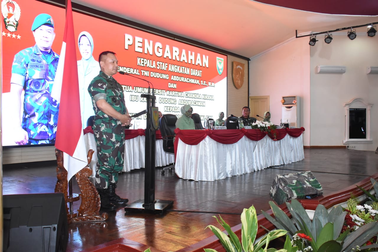 Mengawali arahannya, Kasad mengungkapkan, memiliki kebanggaan tersendiri dapat mengunjungi Kodam II/Swj karena dulu lama bertugas di Kodam II/Swj.