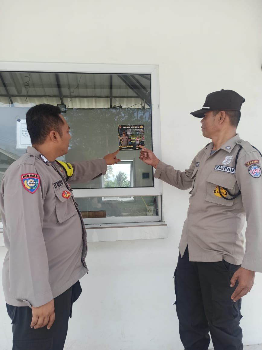 Perusahaan yang berada di desa Bojot Kecamatan Jawilan tersebut, hadirnya Bhabinkamtibmas memberi rasa aman sekaligus pemasangan Flyer Call Center Polsek Jawilan di perusahaan tersebut.