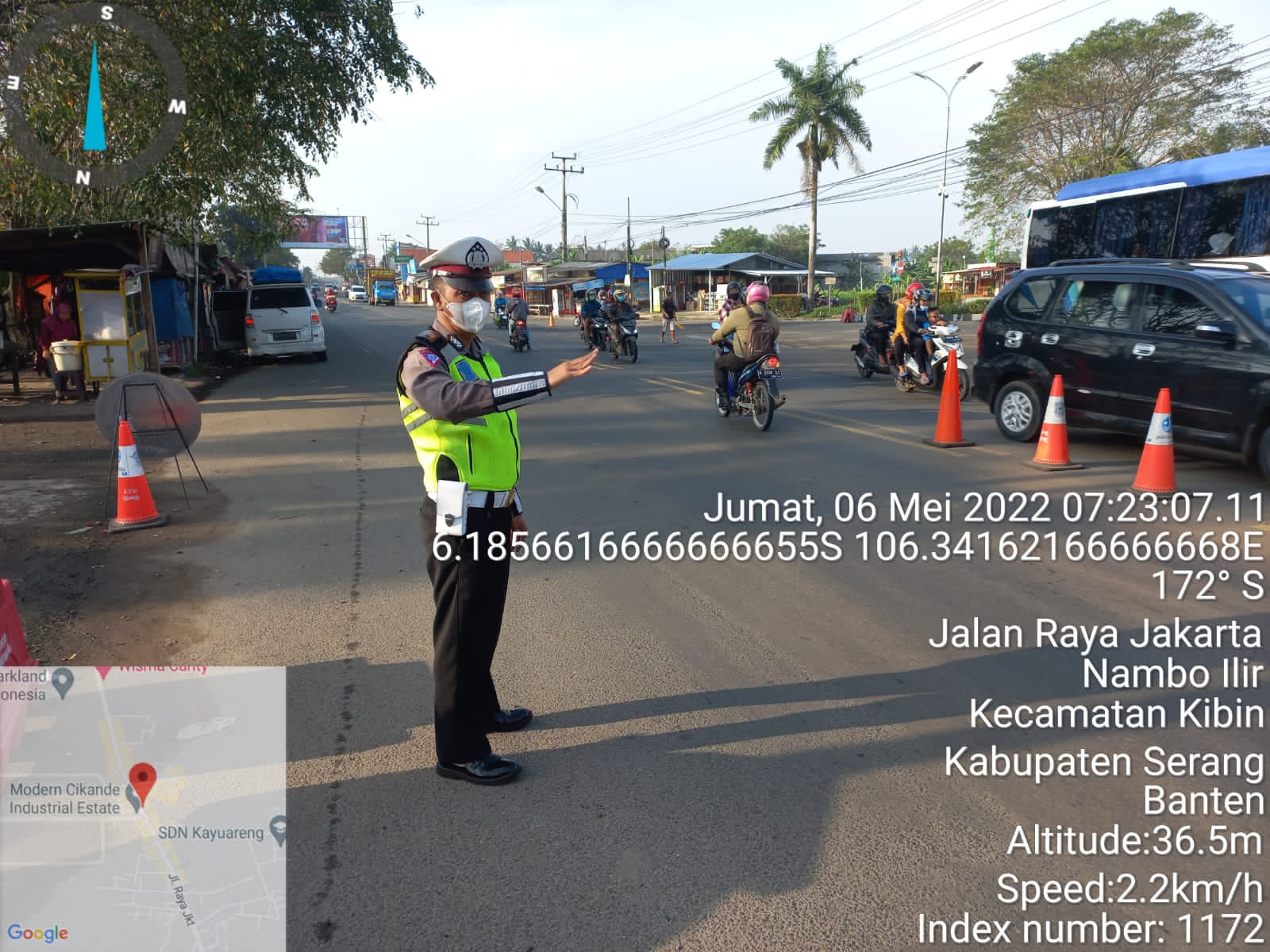 NASIONALXPOS.CO.ID, SERANG – Perlancar arus lalulintas Personel Pos Pelayanan Cikande laksanakan pengaturan arus lalulintas di depan Posyan Jalan Raya Serang-Jakarta. Jumat, (06/05/2022).