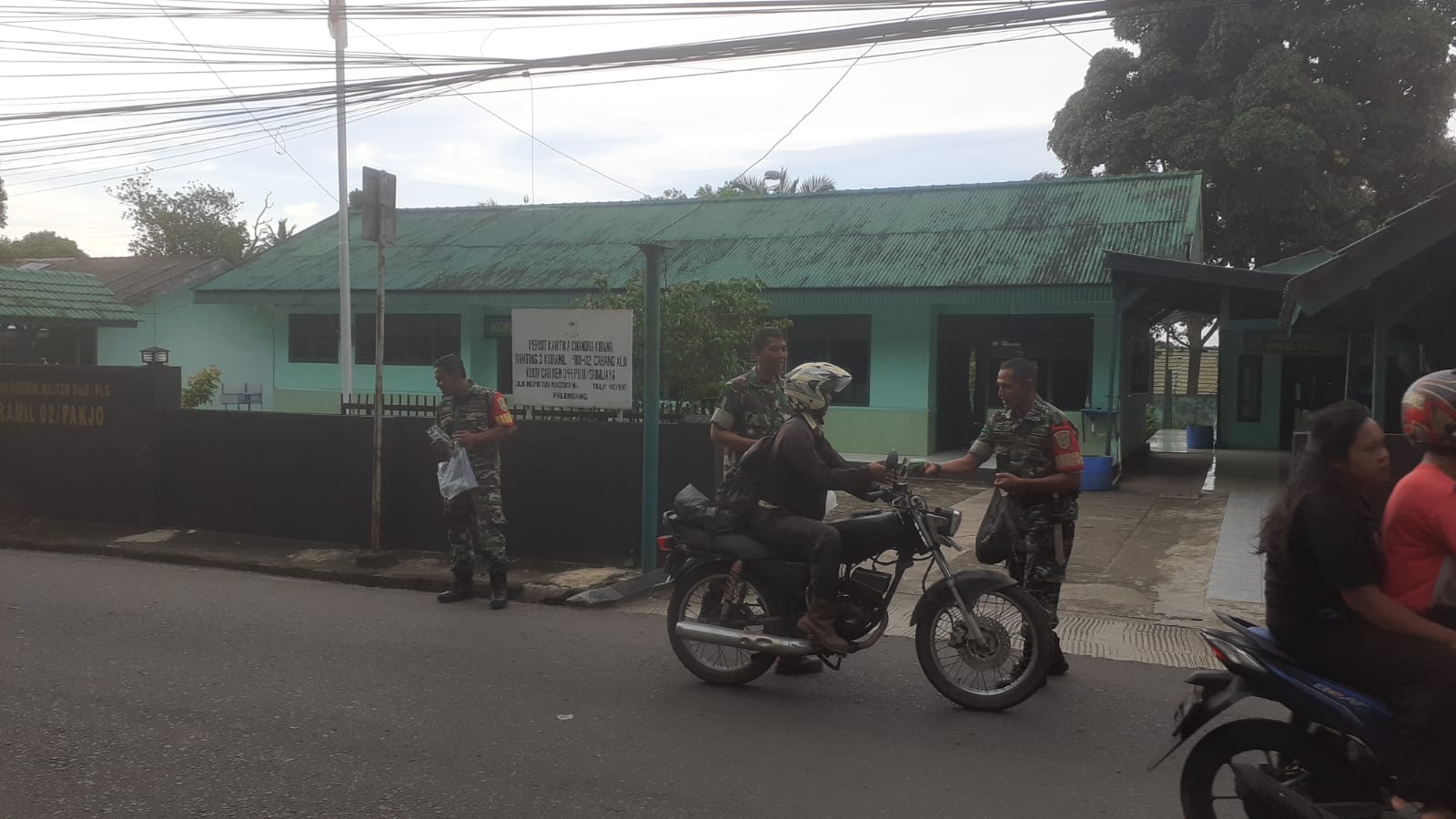 NASIONALXPOS.CO.ID, PALEMBANG – Menjelang waktu berbuka puasa, Anggota Koramil 418-02/Pakjo membagikan takjil kepada masyarakat yang melintas di depan Makoramil 418-02/Pakjo Jalan Inspektur Marzuki Kelurahan Siring Agung Kecamatan Ilir Barat I Kota Palembang, Jum’at (31/3/2023).