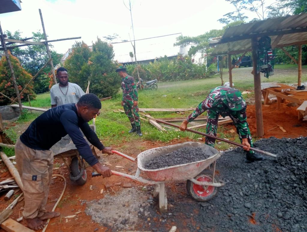 NASIONALXPOS.CO.ID, PAPUA – Membantu wujudkan tempat ibadah yang nyaman, Satgas Yonif Raider 200/BN bersama masyarakat mengadakan gotong royong merenovasi lantai teras di Gereja Katholik, Distrik Elelim, Kabupaten Yalimo, Papua Pegunungan, Sabtu (19/08/2023).