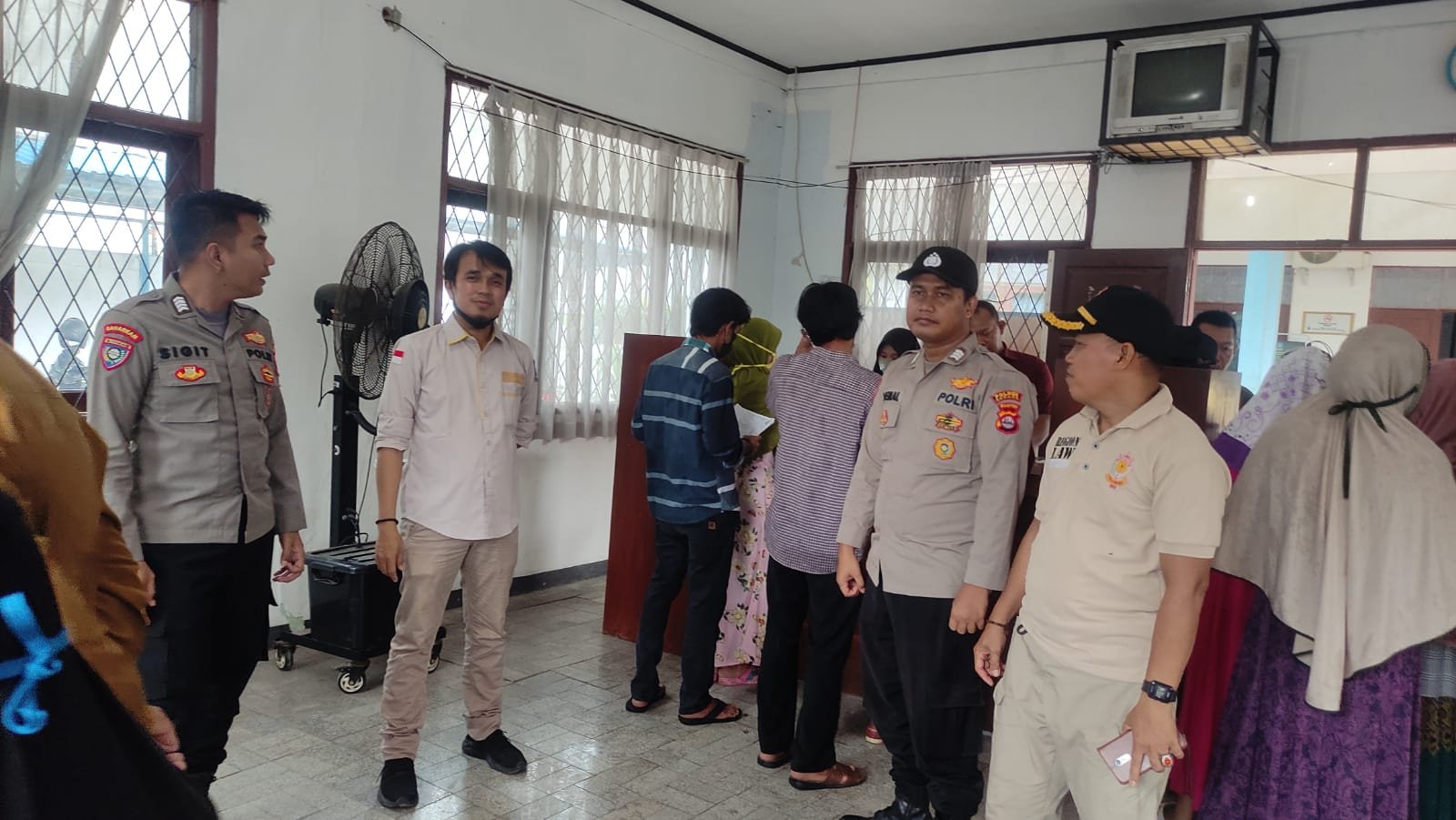 NASIONALXPOS.CO.ID, SERANG – Bhabinkamtibmas Polsek Jawilan Polres Serang Bripka Sigit dan Bripka Jaenal kawal pendistribusian Bantuan Langsung Tunai (BLT) Bahan Bakar Minyak (BBM), di kantor kecamatan Jawilan, Selasa (8/11/2022).