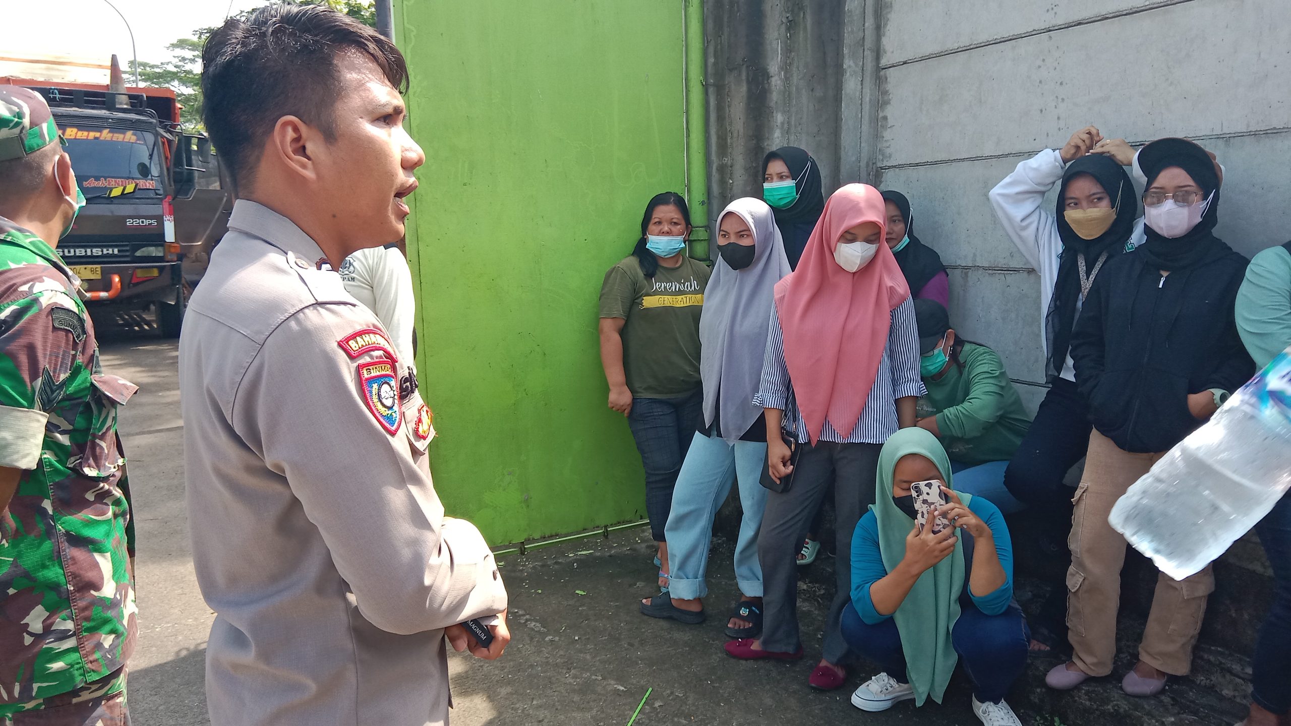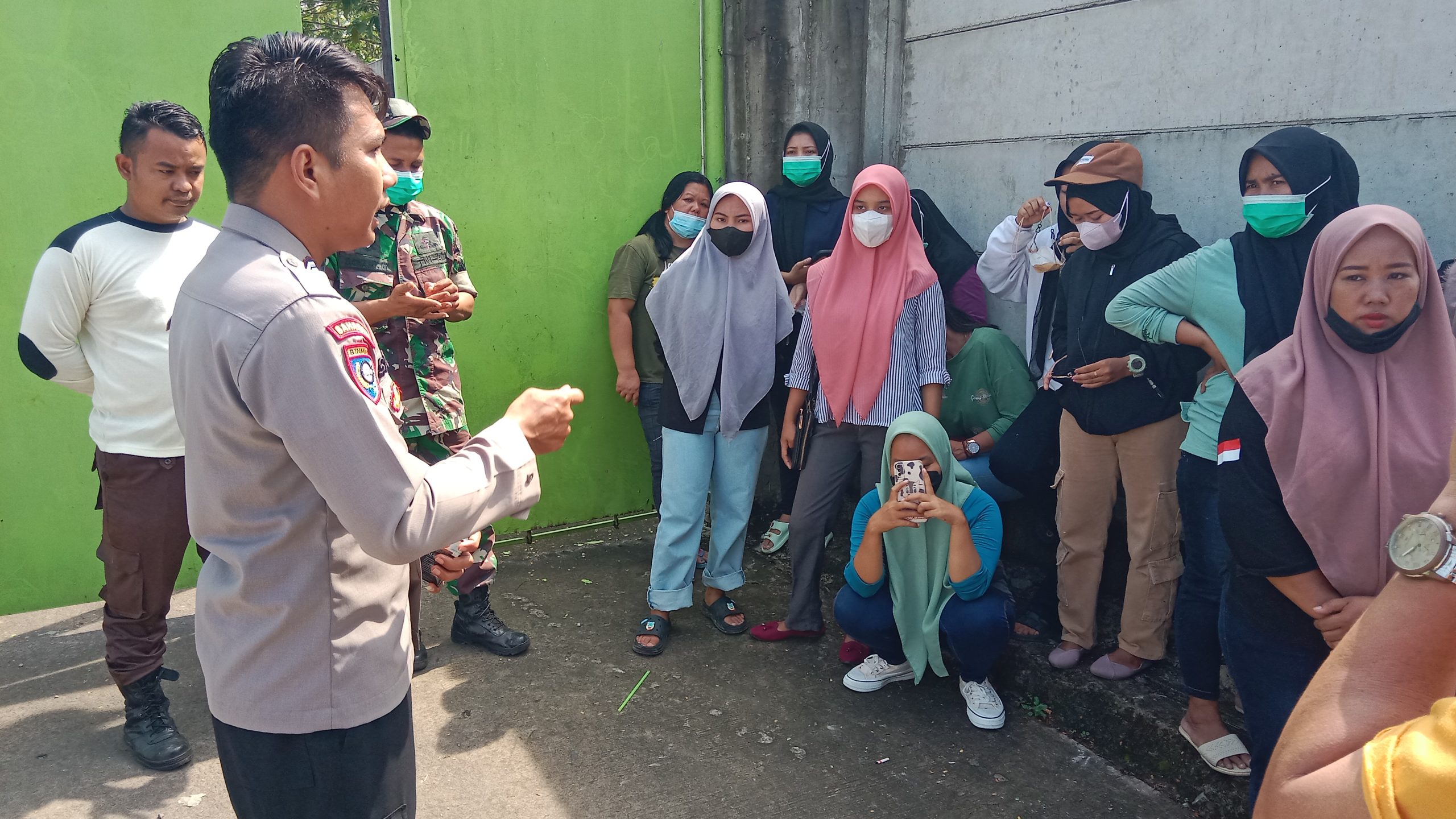 Lebih lanjut, Bhabinkamtibmas desa Junti Bripka Sigit meminta untuk tidak anarkis dan tetap menjaga kamtibmas dengan aman selama melakukan aksi mogok kerja di depan pabrik yang memproduksi kabel tersebut.