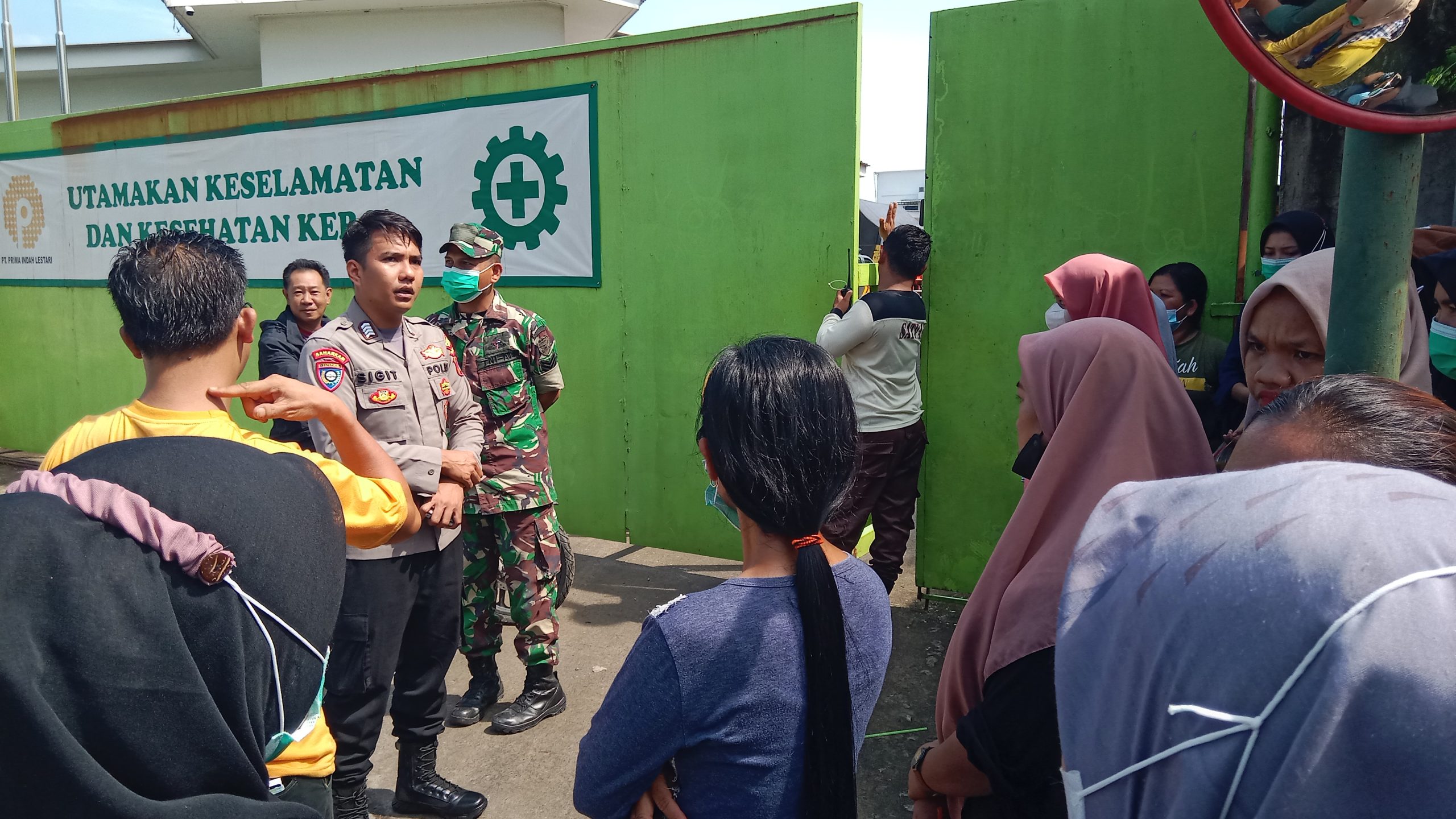 Lebih lanjut, Bhabinkamtibmas desa Junti Bripka Sigit meminta untuk tidak anarkis dan tetap menjaga kamtibmas dengan aman selama melakukan aksi mogok kerja di depan pabrik yang memproduksi kabel tersebut.