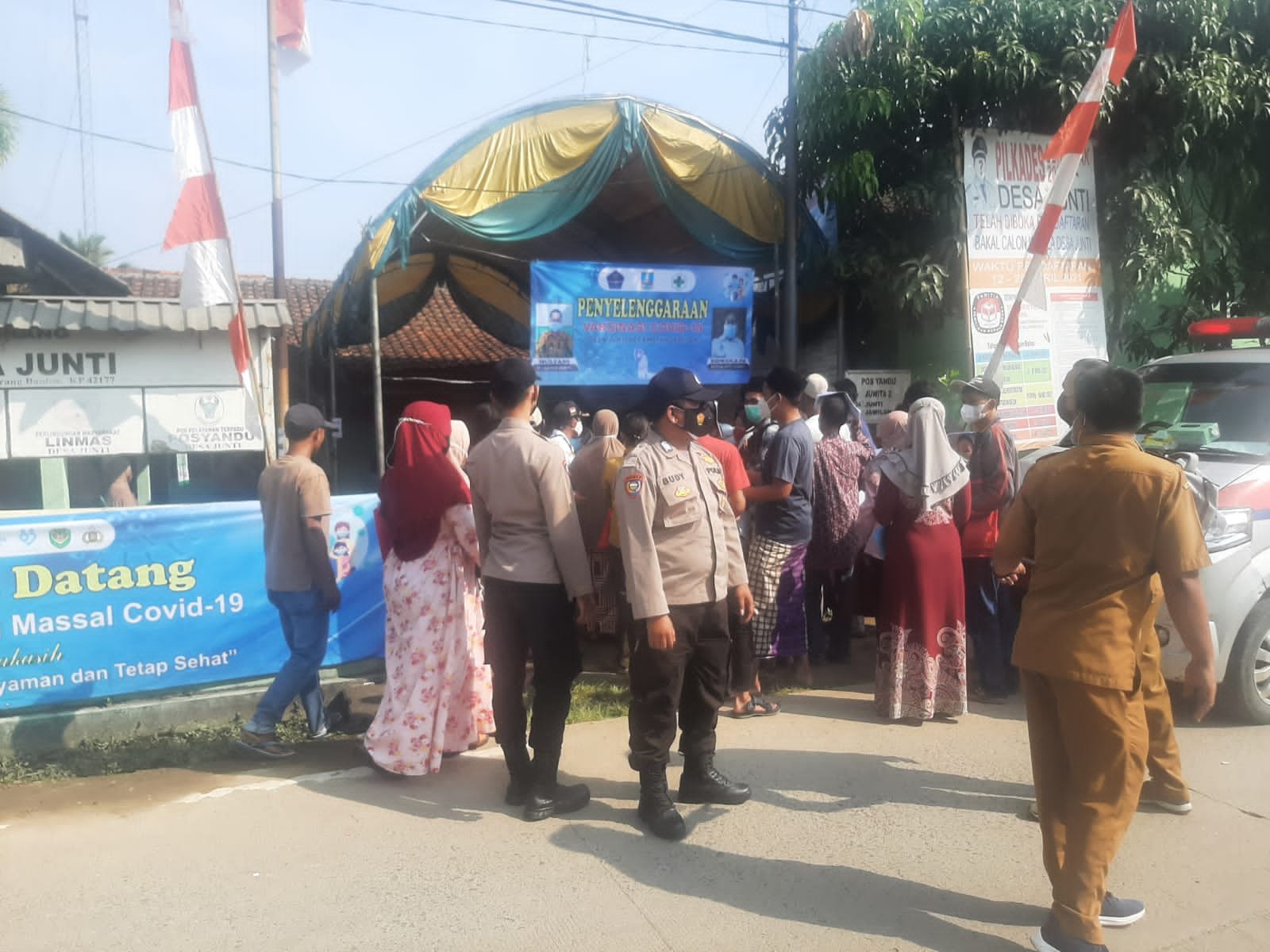 Kapolsek Jawilan Akp Sidik HS melalui Bhabinkamtibmas Polsek Jawilan Bripka Budianto mengatakan kegiatan Jelang Pilkades pelaksanaan vaksinasi covid-19 ini, disesuaikan dengan jadwal kepada warga desa Junti yang belum sempat datang menerima suntikan vaksin covid-19.