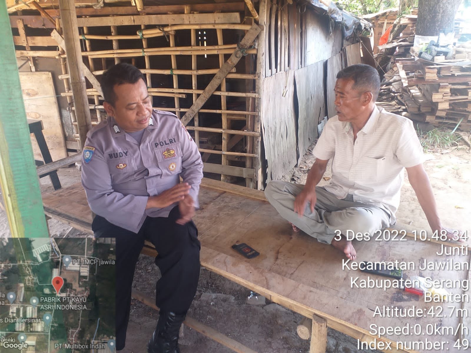 NASIONALXPOS.CO.ID, SERANG – Untuk menjaga situasi kamtibmas yang kondusif Bhabinkamtibmas Desa Junti, Kecamatan Jawilan, Bripka Budianto menyambangi warga masyarakat di kampung paya masjid desa Junti, Sabtu (3/12/2022).