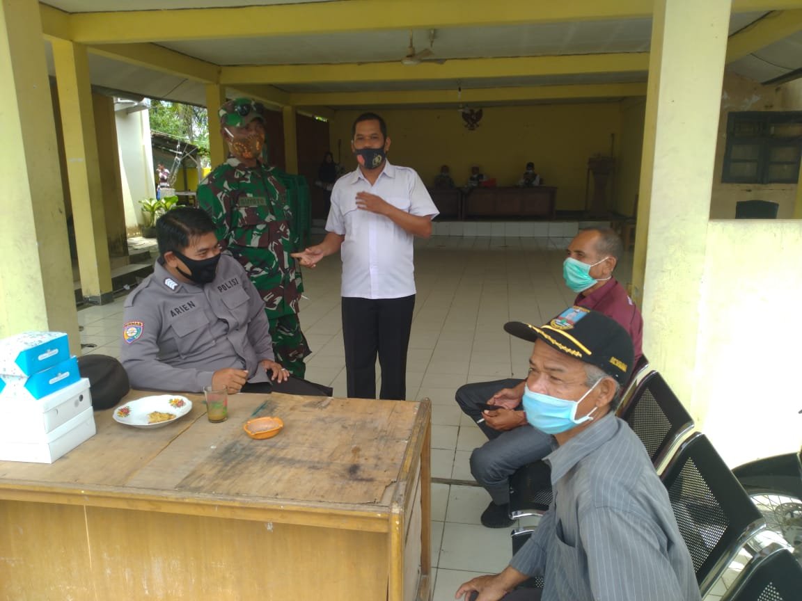 Kapolsek Pamarayan AKP Muljadi, anggota Bhabinkamtibmas Bripka Moch. Arien bersama 3 Pilar menyambangi warga di Kampung Jalajat Desa Damping Kecamatan Pamarayan Kab. Serang untuk menyampaikan pesan Kamtibmas dan juga Himbauan soal prokes.