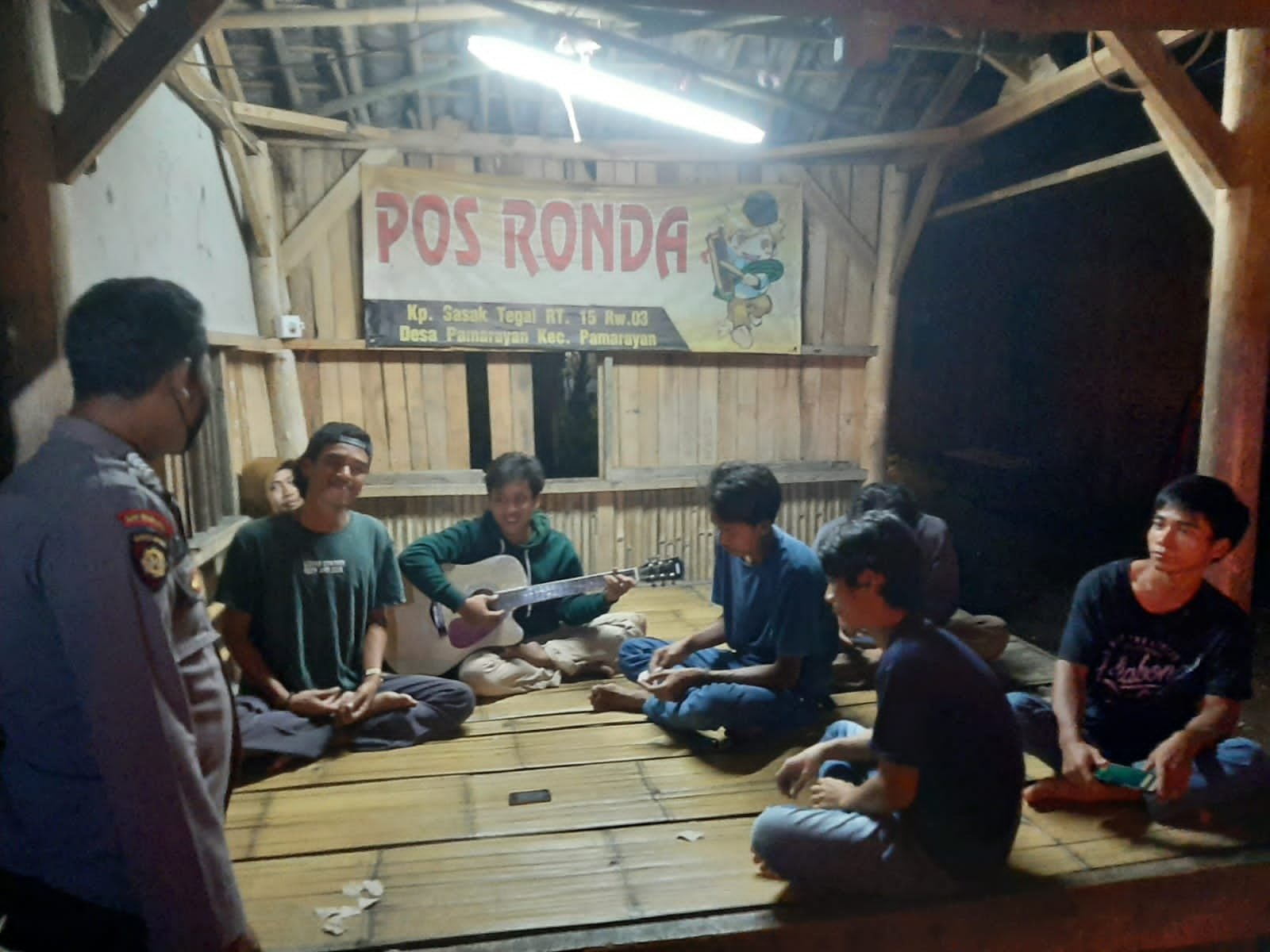 NASIONALXPOS.CO.ID, KABUPATEN SERANG – Dalam rangka memberikan rasa aman dan nyaman bagi masyarakat, personel bhabinkamtibmas Polsek Pamarayan Polres Serang Polda Banten Bripka Nurtriyono melaksanakan sambang poskamling, di Kampung Sasak , Desa Binong Kecamatan Pamarayan, Sabtu (9/10/2021) dinihari.