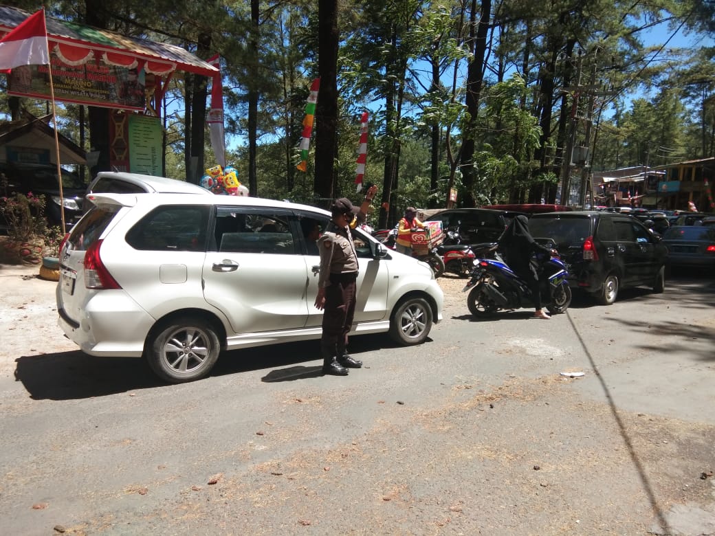 NASIONALXPOS.CO.ID, MAKASAR – Bhabinkamtibmas Malino Polsek Tinggimoncong Polres Gowa BRIPTU Usman mengurai arus lalu lintas di depan objek wisata hutan pinus Malino. Minggu, (23/08/2020).