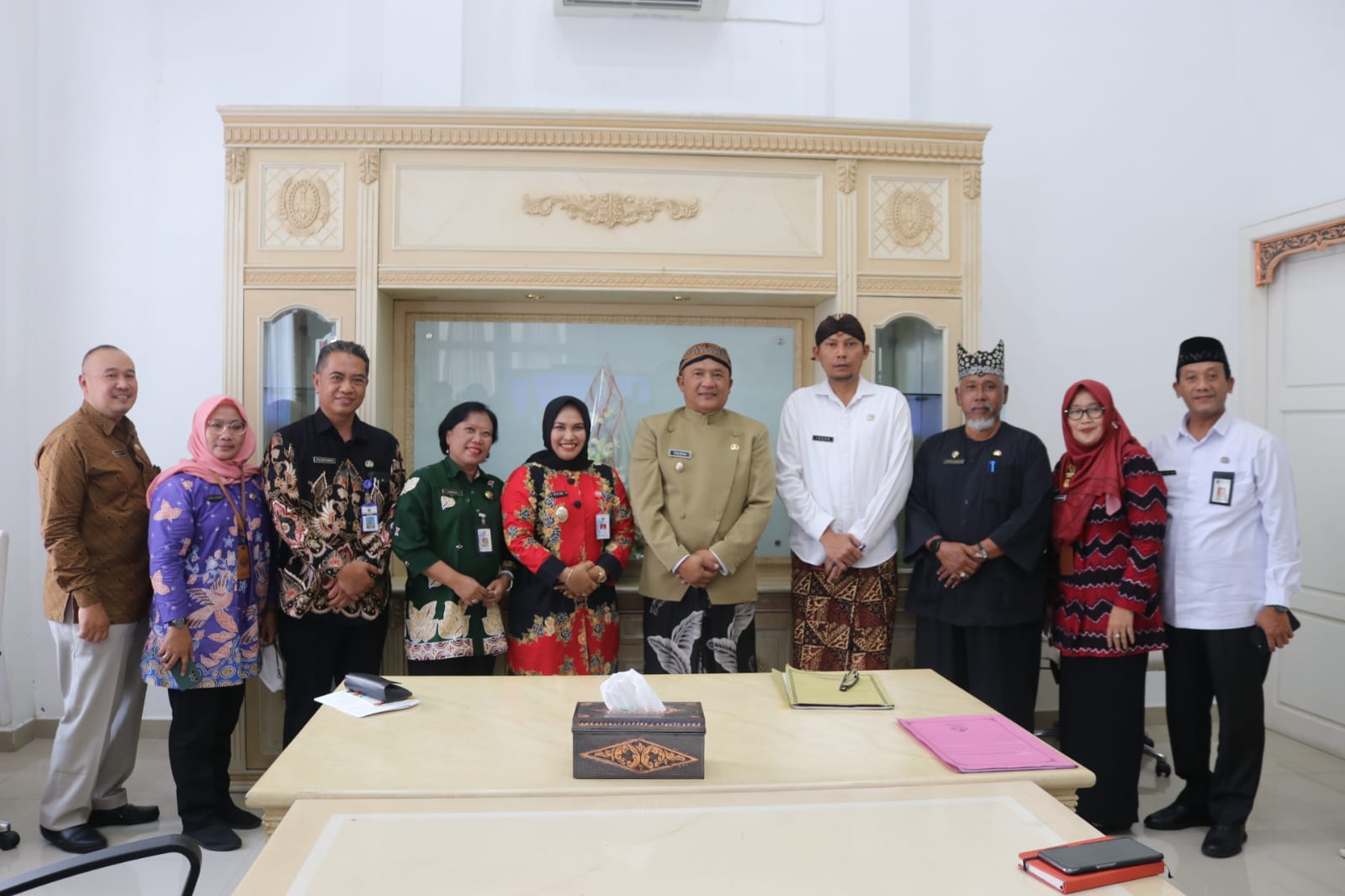 Wabup Tri Yuli beserta rombongan sesampainya di Gedung Putih Kantor Bupati Boyolali diterima oleh Wakil Bupati Boyolali, Wahyu Irawan. Selanjutnya diajak menuju ruang Sadewa untuk diskusi bersama soal pengelolaan data kemiskinan.