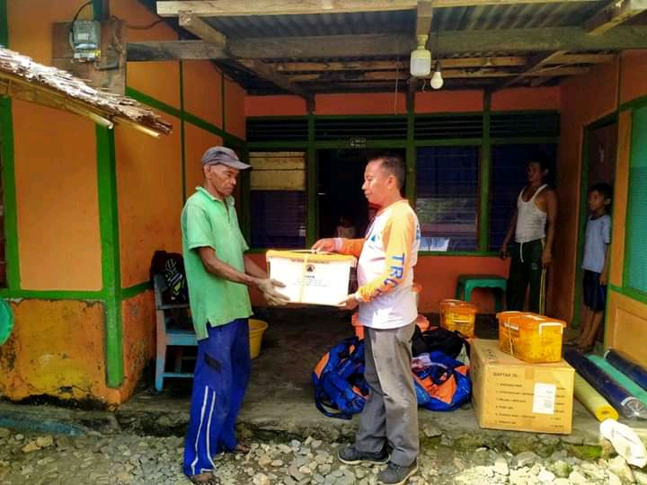 Bantuan itu berupa Pakaian, alat masak, selimut, alat kebersihan, perlengkapan sekolah dan family kit yang di serahkan oleh La Ucu Kepala bidan pencegahan dan kesiapsiagaan BPBD kabupaten SBB kepada La Halili Papalia (56), korban Kebakaran di dusun tanah goyang.