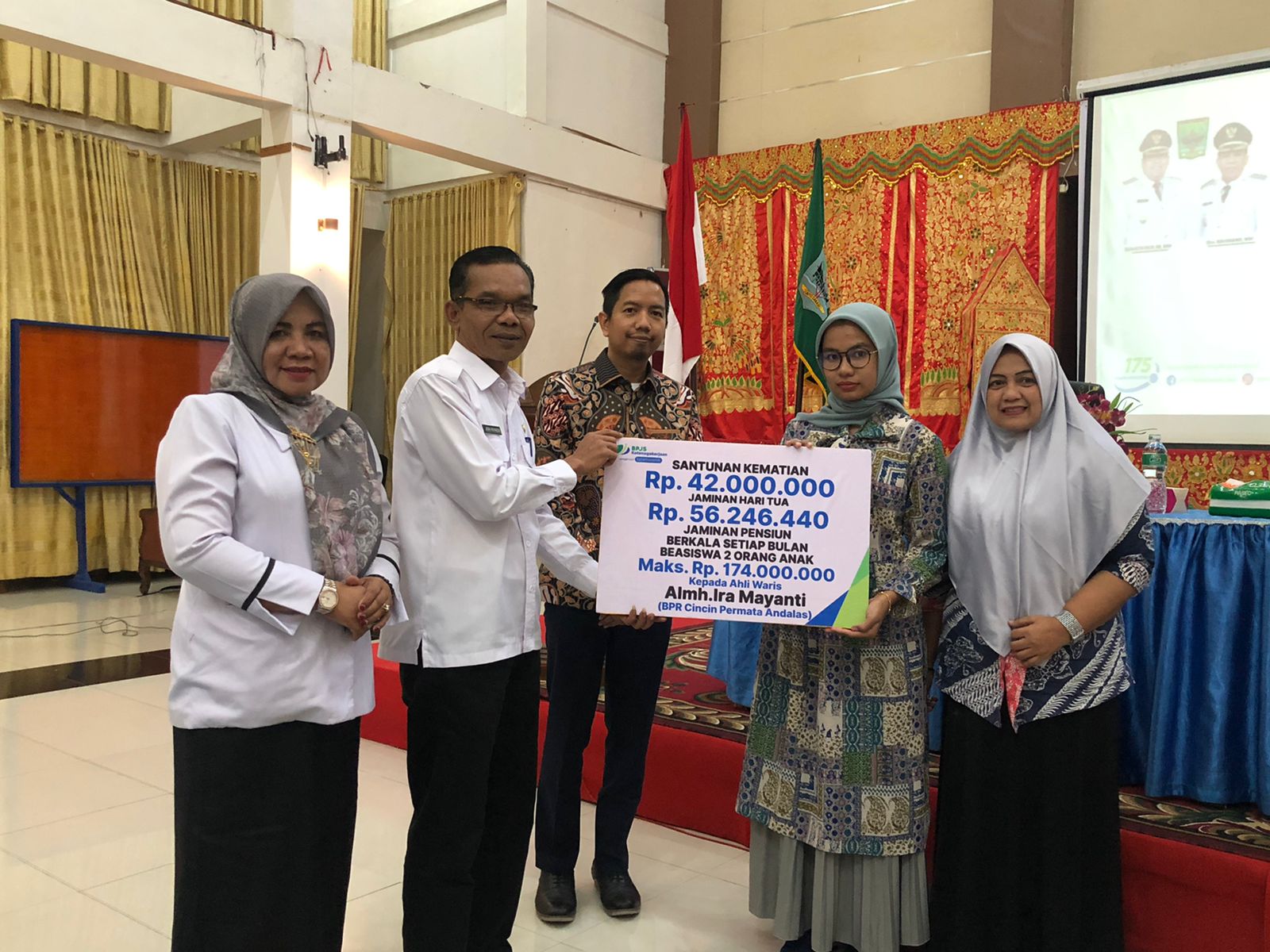Acara ditutup dengan penyerahan secara simbolis penyerahan santunan Jaminan Kematian dan penyerahan bantuan berupa sembako kepada para pekerja dengan harapan santunan yang diterima, keluarga yang ditinggalkan bisa meneruskan kehidupannya secara mandiri dan putra/i almarhum dapat melanjutkan pendidikannya. (rd)