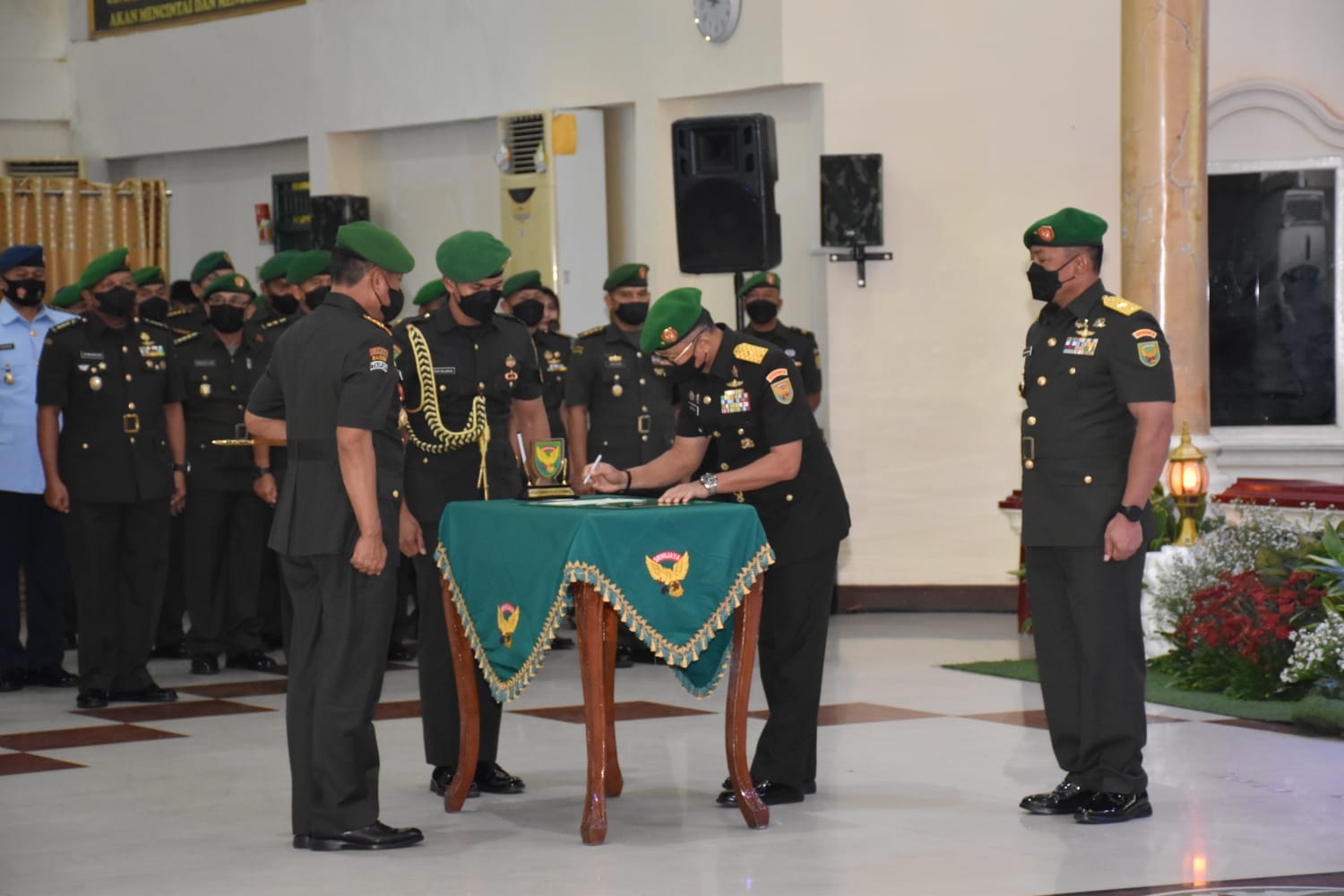 Acara Serah Terima Jabatan (Sertijab) Kasdam II/Sriwijaya dipimpin langsung Pangdam ll Mayjen TNI Agus Suhardi, Selasa (21/6/2022), di Gedung Sudirman Makodam II/Swj Jalan Jenderal Sudirman KM. 2,5 Palembang.