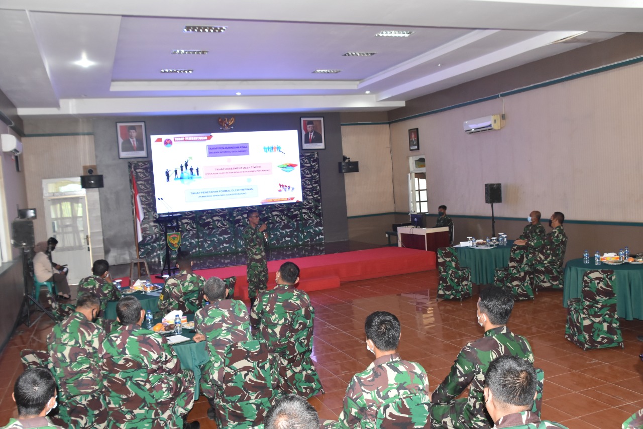 Lebih lanjut Danrem mengatakan, guna memiliki kemampuan, maka dari itu disetiap jajaran telah dinilai beban tugasnya masing-masing. Pada hakekatnya, efisiensi kegiatan yang kita lakukan betul-betul bisa dicerminkan, karena berkaitan dengan reformasi dan biokrasi, dengan dasar Peraturan Menteri tentang pedoman pembangunan agen perubahan di lingkungan TNI yang bebas dari korupsi.