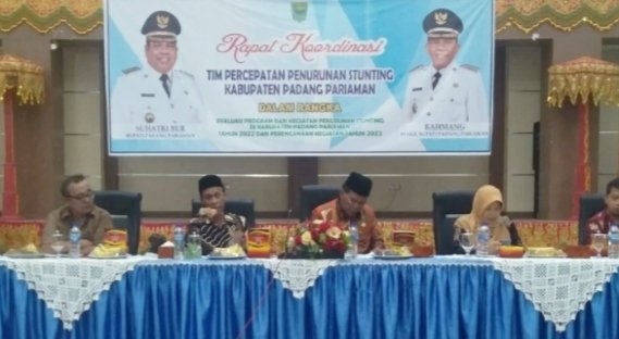 NASIONALXPOS.CO.ID, SUMBAR – Wakil Bupati Padang Pariaman Rahmang dan juga selaku ketua TPPS di dampingi asisten I Rudi Rahmat, Kepala Dppkb padang pariaman, membuka secara resmi Rapat Koordinasi Tim Percepatan Penurunan Stunting (TPPS) Kabupaten padang pariaman, bertempat di Hall IKK Kantor Bupati padang pariaman, Kamis (16/2/2023)