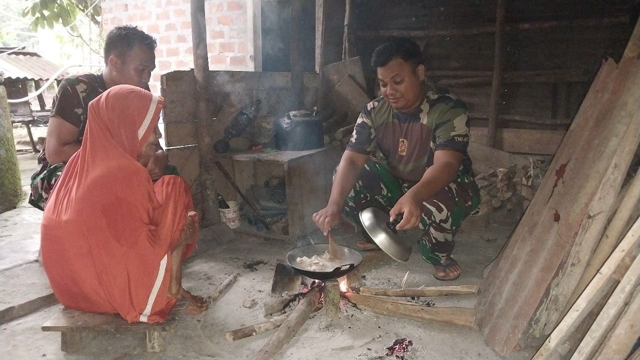 Anggota Satgas TMMD pun tidak canggung membantu tuan rumah yang ditinggali memasak sayur atau menggoreng kerupuk, tahu dan tempe sebagai lauk makan malam. Suasana keakraban pun nampak jelas, Serasa seperti keluarga.