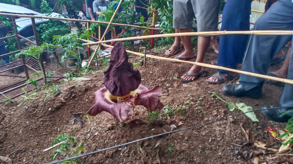 Sementara ketua RT setempat , Imam, awalnya dirinya bersama warga lain tak menduga dan mengetahui kalau tanaman itu merupakan jenis tanaman langka yang dilindungi. “Tanaman ini baru tumbuh dua hari yang lalu (Minggu , 1/11/2020). Bahkan sebelumnya ada dua yang tumbuh tapi kita karungin dan dibuang karena mengeluarkan bau busuk. Saat itu kita tidak tahu ,” tuturnya.