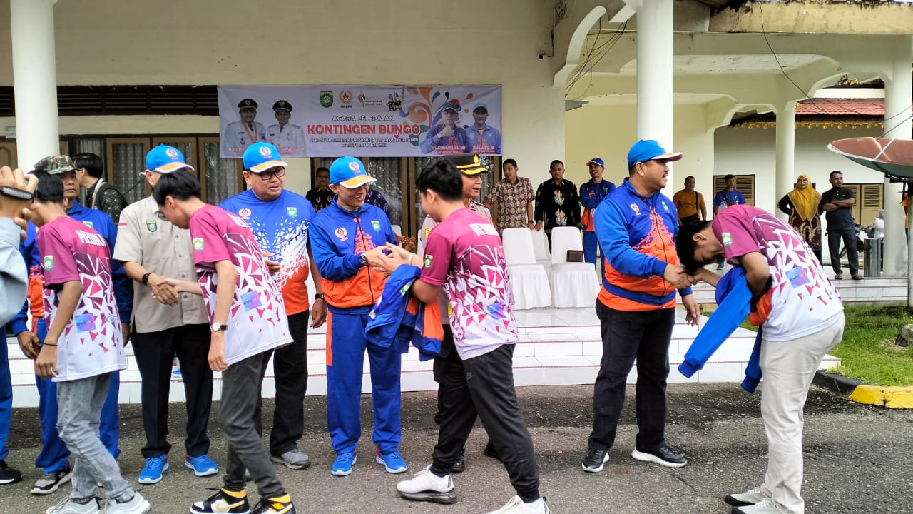 Pelepasan para kontingen tersebut bertempat di halaman Wisma Alisudin, Rumah Dinas Bupati Bungo disaksikan oleh Sekda, unsur Forkopimda, para Kepala OPD di lingkup Pemkab Bungo, Kadis Porapar Zainuddin, S. Pd, MM beserta para pelatih, official dan atlit, Kamis (06/07/2023).