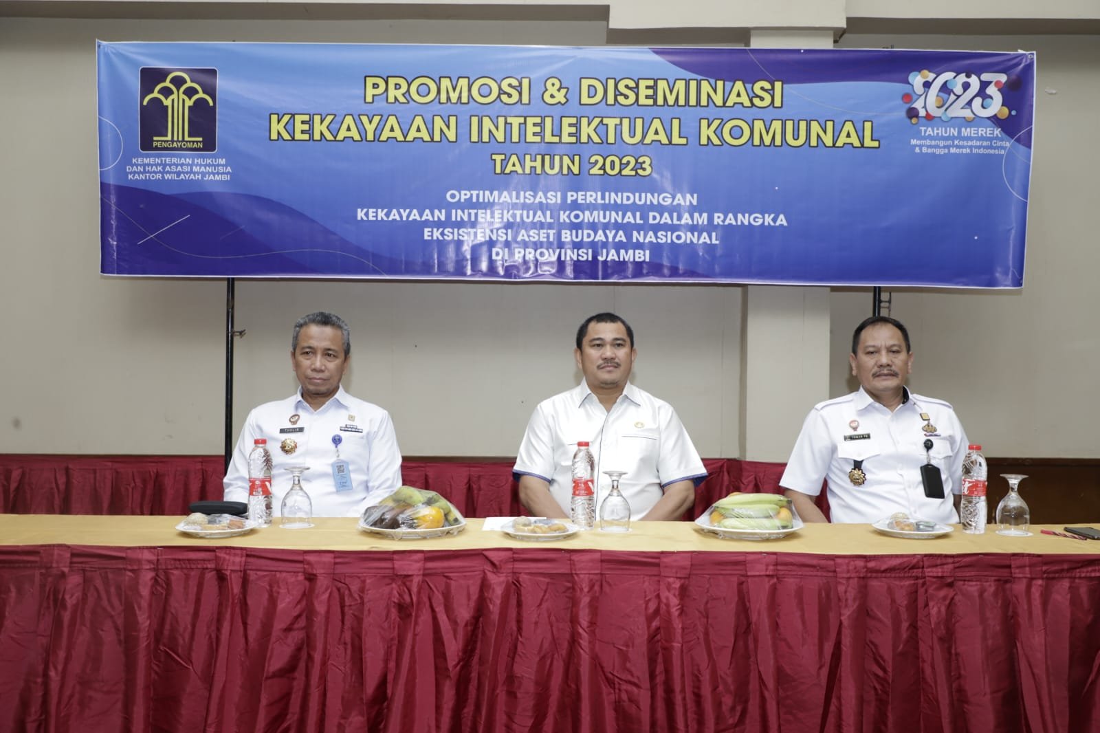 NASIONALXPOS.CO.ID, BUNGO – Dalam rangka memberikan pelayanan kepada masyarakat terkait kekayaan intelektual, Kantor Wilayah (Kanwil) Kemenkumham Jambi bekerja sama dengan Pemerintah Daerah dan stakeholder di Kabupaten Bungo menggelar kegiatan Promosi dan Diseminasi Kekayaan Intelektual komunal, Rabu (22/02).