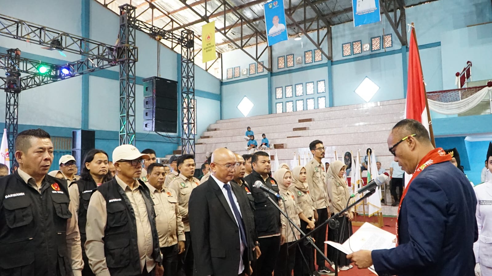 Prosesi berlangsung khidmat, dan disaksikan unsur Forkopimda, kepala OPD, pengurus cabang olahraga, insan olahraga, serta para tamu undangan.