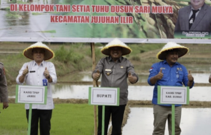 Bupati Bungo Hadiri Tanam Padi Sawah di Dusun Sari Mulya