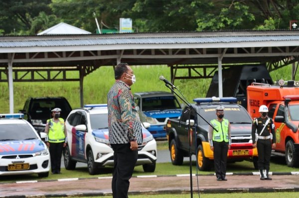 Apel Operasi Lilin 2021, turut hadir Forum Komunikasi Pimpinan Daerah (Forkopimda), Pejabat dari beberapa instansi terkait dan pasukan upacara dari masing masing instansi.