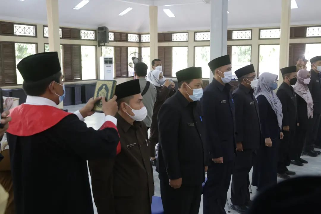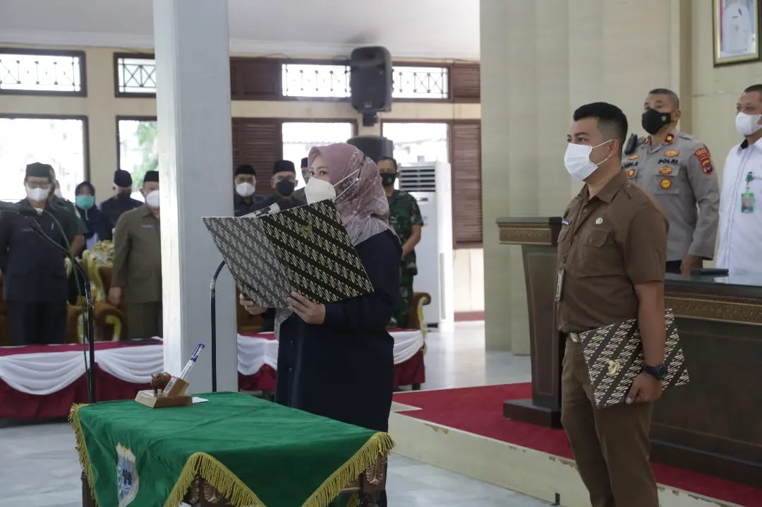Sebanyak 9 pejabat pimpinan tinggi pratama dilingkungan pemerintah kabupaten pandeglang dilantik dan diambil sumpah oleh Bupati Pandeglang Irna Narulita bertempat di Gedung Pendopo, Senin (11/7/2022