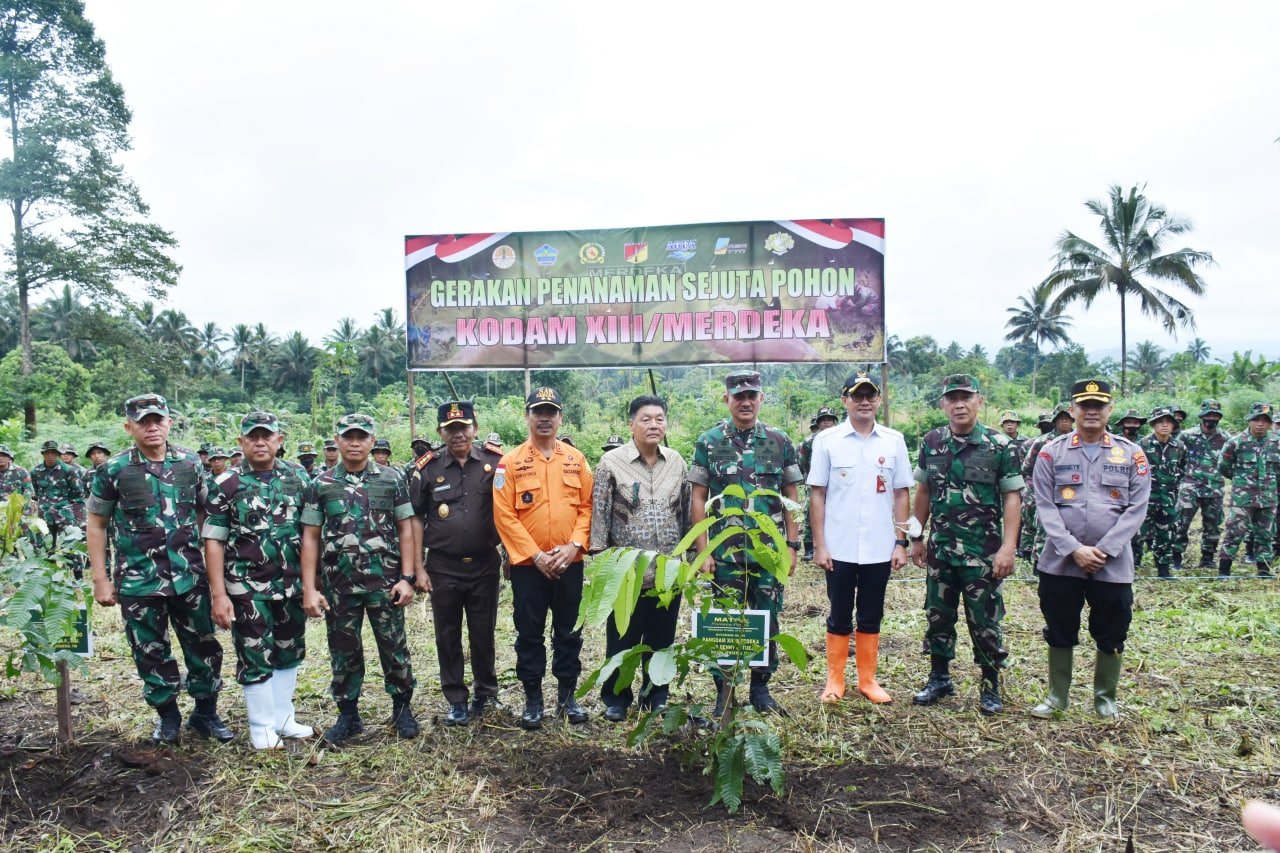“Gerakan penanaman sejuta pohon ini merupakan salah satu sumbangsih dan kepedulian Kodam XIII/Merdeka dalam upaya menyelamatkan hutan dan melestarikan lingkungan hidup, dalam menjaga serta memelihara hutan, sebagai upaya untuk mempelopori program penghijauan, guna memperbaiki lingkungan yang telah rusak,” ucap Pangdam XIII/Merdeka dalam sambutannya.