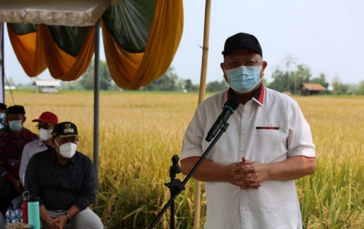 NASIONALXPOS.CO.ID, LAMPUNG SELATAN – Bupati Lampung Selatan, H. Nanang Ermanto bersama Ketua Komisi IV DPR RI, Sudin,SE lakukan kegiatan Panen Raya Padi VUB Inpari 33 dan Inpari 35 dengan penerapan Demplot Inovasi Teknologi Balai Pengkajian Teknologi Pertanian (BPTP) Lampung, Sabtu (4/9/2021).