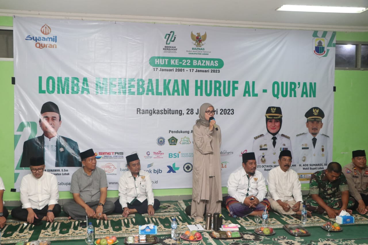 Dalam rangka mendukung gerakan cinta dan mendorong kehadiran zakat, infaq dan shadaqah di tengah masyarakat oleh Baznas Kabupaten Lebak, Pemkab Lebak telah memfasilitasi pengalokasian anggaran hibah untuk Baznas Kabupaten Lebak sebesar Rp. 290.000.000,- (dua ratus sembilan puluh juta rupiah), Fasilitasi gedung sekretariat Baznas Kabupaten Lebak, serta untuk penguatan jaringan Baznas, telah dibentuk unit pengelola zakatupz dilingkungan OPD, Unit Pengumpul Zakat (UPZ) di BUMD dan UPZ Kecamatan, Kelurahan/Desa dan Perusahaan Swasta. Hal tersebut disampaikan Bupati Lebat Iti Octavia Jayabaya saat membuka kegiatan Hari Ulang Tahun Baznas Ke-22 yang dilaksanakan di Masjid Agung Al-A’raf Rangkasbitung, Sabtu (28/1/2023).