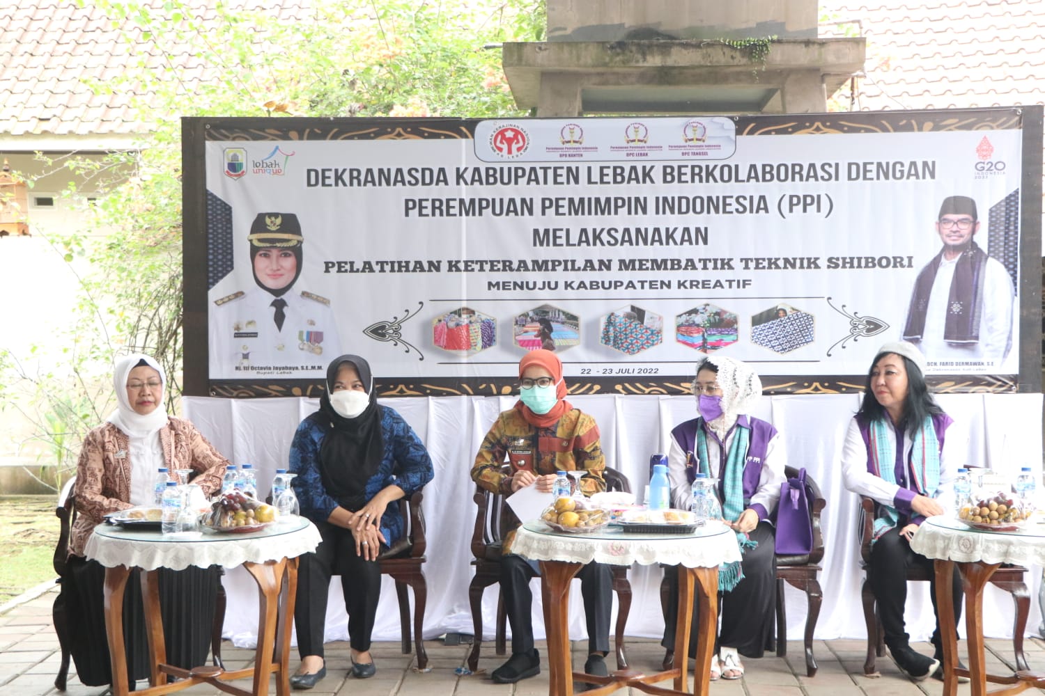 Bupati Lebak Iti Octavia Jayabaya membuka secara resmi Pelatihan Membatik Teknik Shibori yang diselenggarakan Dewan Kerajinan Nasional Daerah (Dekranasda) Kabupaten Lebak berkolaborasi dengan Perempuan Pemimpin Indonesia (PPI) DPC Tangsel dan Lebak. Bertempat di Imah Batik Sahate Rangkasbitung, Jum’at (22/7/2022).