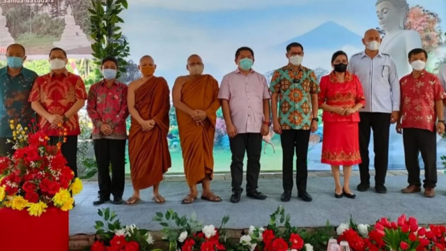 NASIONAL  XPOS.CO.ID MINUT – Bupati Minahasa Utara Joune Ganda, Hadiri perayaan Hari Raya Waisak di Dharmasanti Tri Suci Waisak ke 2566, 2022, dilaksanakan di Vihara Arama Kebun Kesadaran, Desa Kolongan,  Kecamatan Talawaan Senin, (16/05/2022).