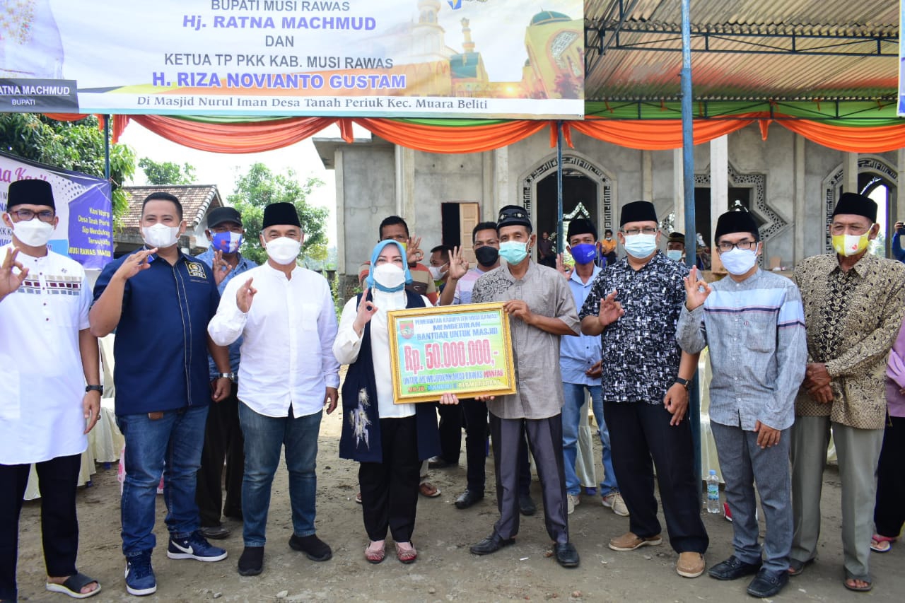NASIONALXPOS.CO.ID MUSI RAWAS – Bupati Musi Rawas Hj Ratna Machmud bersama Ketua TP PKK Musi Rawas Riza Novianto mengunjungi Masjid Nurul Iman Desa Tanah Periuk Kecamatan Muara Beliti, sabtu (17/07/2021).