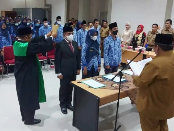 NASIONALXPOS.CO.ID, SUMBAR -Sebanyak 98 orang Aparatur Sipil Negara (ASN) dilingkungan Pemerintah Kabupaten Padang Pariaman, ikuti prosesi pelantikan dan pengambilan sumpah jabatan. Pelantikan dan pengambilan sumpah langsung dipimpin oleh Bupati Padang Pariaman Suhatri Bur, bertempat di Aula Bapelitbangda di kawasan IKK Padang Pariaman di Paritmalintang, Senin (30/05/22)