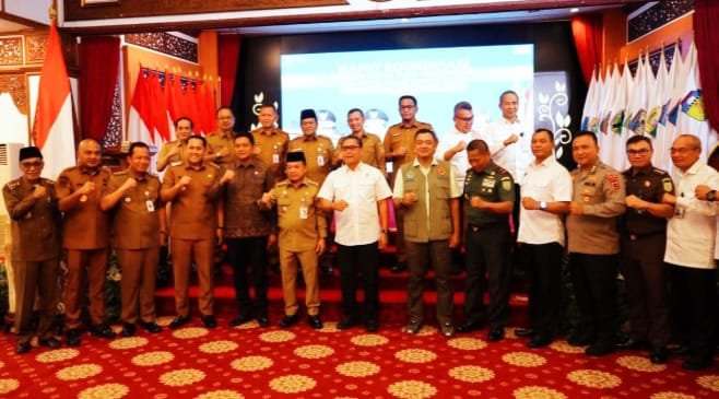 “Rakor ini membahas sejumlah agenda strategis, mulai dari perkembangan aksi Satgas Karhutla 2025, integrasi sistem pemantauan wilayah rawan Karhutla, hingga akselerasi penggunaan energi baru dan terbarukan sebagai bagian dari agenda transisi energi nasional,” ujar Bupati Agus.