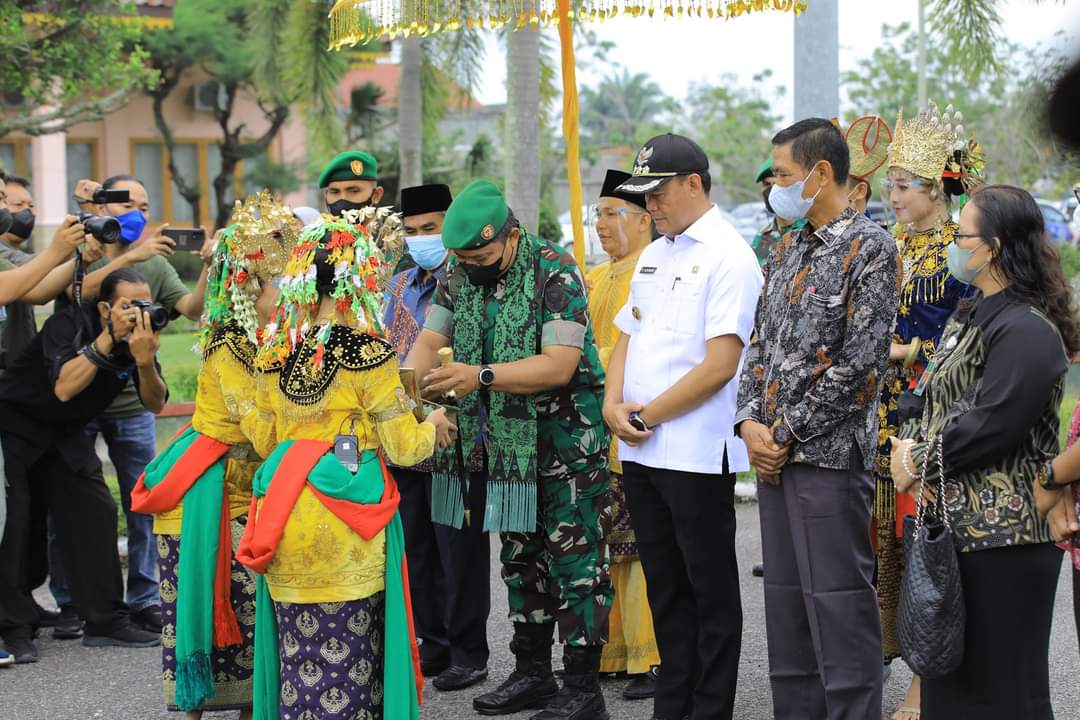 Pada acara ramah tamah yang dihadiri anggota DPR RI komisi IX hj. Saniatul Lativa, SE,MM, Sekda Teguh Arhadi dan para Kepala OPD, Bupati Sukandar menyampaikan ucapan selamat datang kepada Danrem 042 Gapu Brigjen Supriono dan rombongan di Bumi Seentak Galah Serengkuh Dayung.