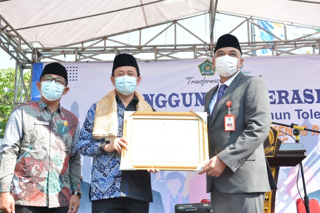 NASIONALXPOS.CO.ID, KABUPATEN TANGERANG – Di awal Tahun 2022, Bupati Tangerang A. Zaki Iskandar meraih penghargaan dari Menteri Agama Republik Indonesia yang diserahkan langsung oleh Kepala Kantor Wilayah Kemenag Provinsi Banten di halaman Kantor Kementerian Agama Kabupaten Tangerang Tigaraksa. Rabu (5/1/22).