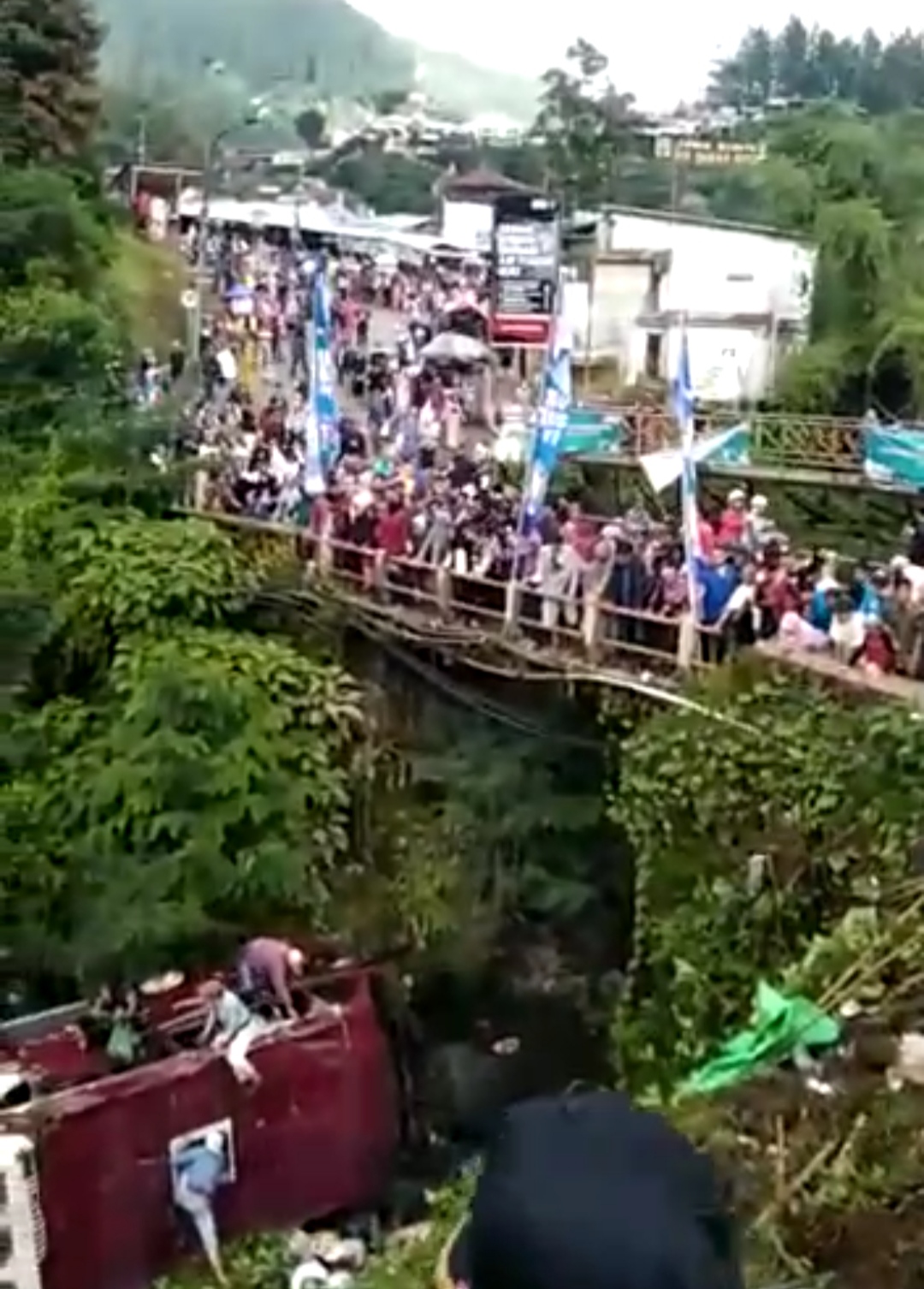 Dari video yang beredar dan melaporkan kondisi kecelakaan bus. ada dua bus yang digunakan peziarah, namun salah satu bus jatuh ke jurang yang memiliki batuan besar.