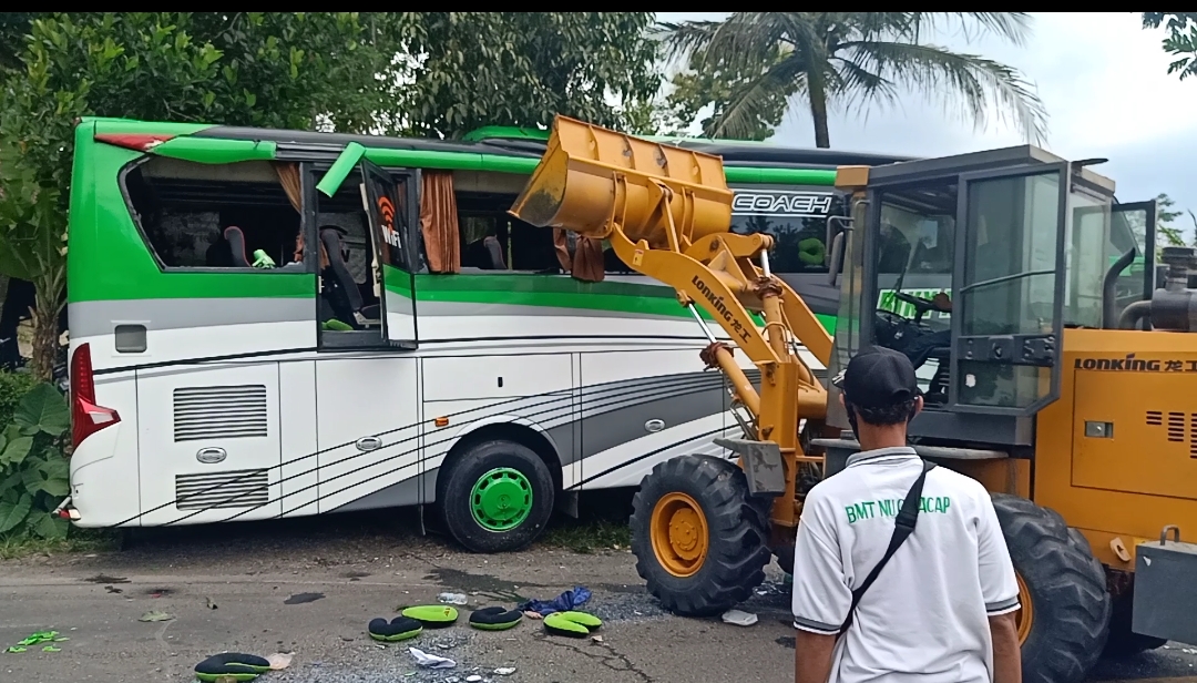 Dikatakan Kasat Lantas Polres Cilacap, AKP. Indri yang langsung turun ke lokasi kejadian, bahwa kecelakaan tersebut antara Bus dan Pick Up.